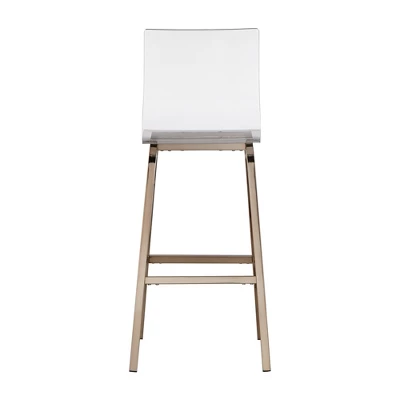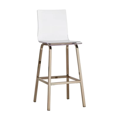 The perfect finishing touch for the modern kitchen or bar, the 29″ Alta Modern Barstools from Inspire Q make a bold style statement. These one of a kind bar stools feature molded acrylic seats that help maintain the look and flow of your space. Rising on metal legs, these chairs are the perfect expression in modernity. These square chairs with a shiny gold metal finish will impress your guests the next time they visit. During assembly, an optional swivel mechanism can be added.