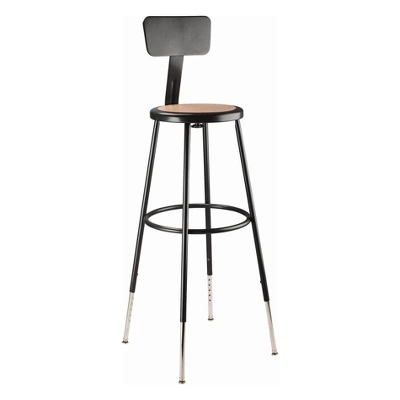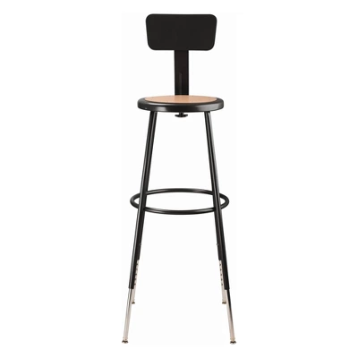 The durable construction and classic design of the black 6200 Series heavy-duty stools are ideal for hands-on educational settings like art rooms, science labs, home economics or shop classrooms. These reliable stools feature a sturdy frame of 18-gauge steel tubing securely welded to a 14 inch diameter seat pan. Riveted to the pan are firm, round Masonite seats that will not warp, chip or crack as they provide years of dependable use. Footrest rings are securely bonded to each leg with four spotwell contact points. This model features height-adjustable legs extending from 32 inches to 39 inches in 1-inch increments and adjustable backrests that can be moved 2 inches up/down and forward/back.