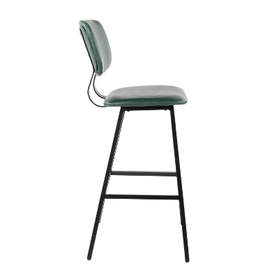 A contemporary take on a classic design, the Foundry Bar Stool by LumiSource features a curved backrest, black metal stationary legs, and a built-in footrest for added comfort. Upholstered in a luxurious faux leather with contrasting stitching, the Foundry Bar Stool is available in a variety of color options, sure to fit your space.