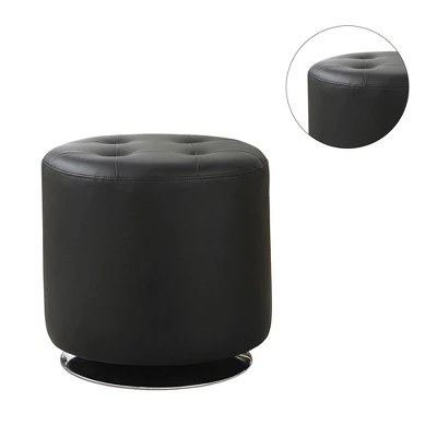 Providing contemporary style and hidden storage, this ottoman is an excellent addition to any seating ensemble. This dapper design strikes a drum-shaped silhouette with thick, round legs. Easy-to-clean black leatherette upholstery envelops the ottoman, accented by detail stitching and cushioned with medium-firm foam padding. Athens off the removeable lid to reveal hidden storage space for everything from board games to blankets, or flip the lid and place it back on top to provide a solid side table for drinks, and accessories.