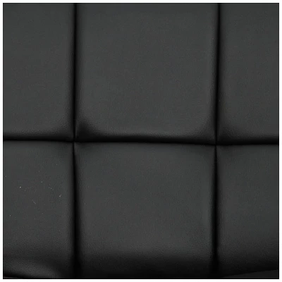 - Black faux leather with hand-crafted tufting details. Plywood construction. Chrome finish metal base.