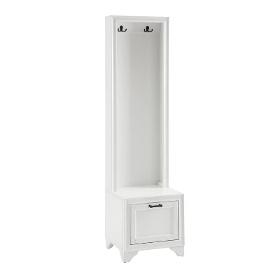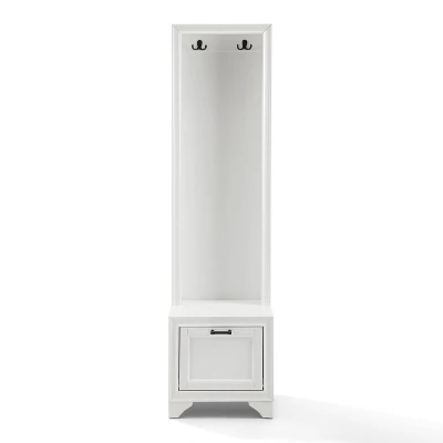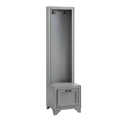 Embrace the beauty of an organized entryway with the Harper Entryway Collection. Slimmer than traditional hall trees, the tower has four large hooks for hanging coats, hats, and scarves. An open storage shelf on top and a full-extension drawer in the base, make this tower more than a traditional coat rack. The label holder hardware on the storage drawer is customizable allowing for more personalized organization. Modular in design, the Harper Entryway items can be paired with a variety of pieces within the collection.