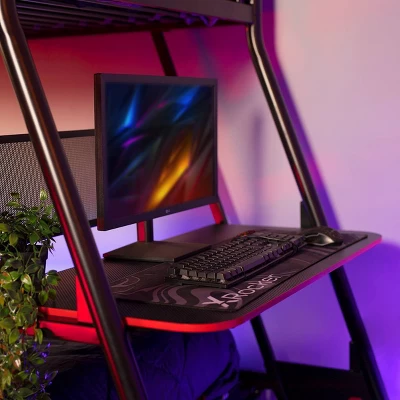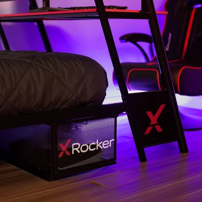 The X Rocker Armada Gaming Bunk Bed, Built-In Gaming Desk is a versatile gaming desk/bunk bed hybrid, perfect for younger gamers. Featuring a high bunk platform and gaming desk with upper shelving for collectibles and storage. Constructed with a strong and durable metal frame provides stability while the gaming desk can house multiple monitor setups for the ultimate gaming experience.