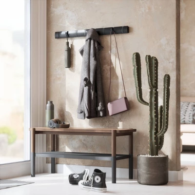 - MULTI-PURPOSE WALL MOUNTED HANGER: More than just a coat rack, Umbra Flip is a unique wall mounted rail that features retractable hooks for hanging a variety of items including coats, scarves, purses, umbrellas, towels, clothing and more
