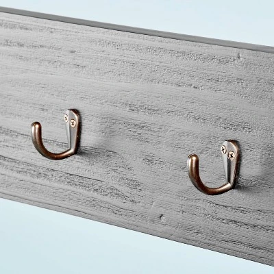 Create additional storage space in your entryway with this Wood Entryway Bench & Hall Tree from Hearth & Hand™ with Magnolia. Crafted with a mix of a solid wood frame and natural wood, this entryway benchcomes in a dark woodgrain that blends effortlessly with any decor styles and color palettes. This entryway bench is designed with a place to sit while putting on shoes and boots, and it comes with five hooks to provide ample hanging space for your coat, hat and other accessories. Plus, the shelves offer enough space for your shoes, books and more, helping you maintain a clean and organized home.